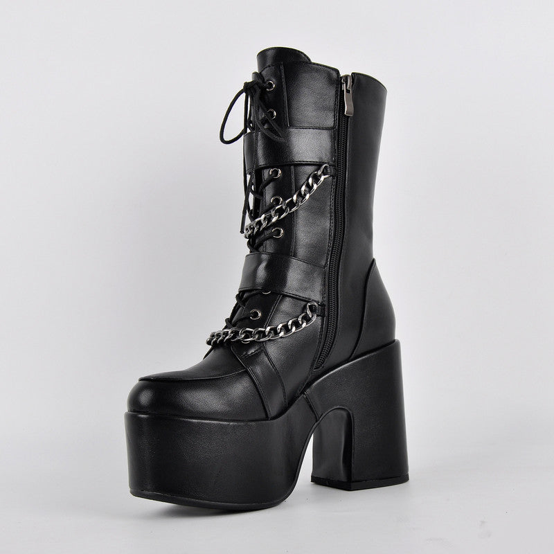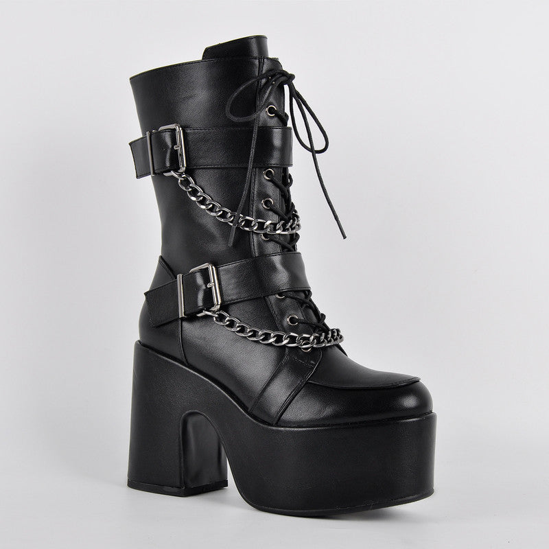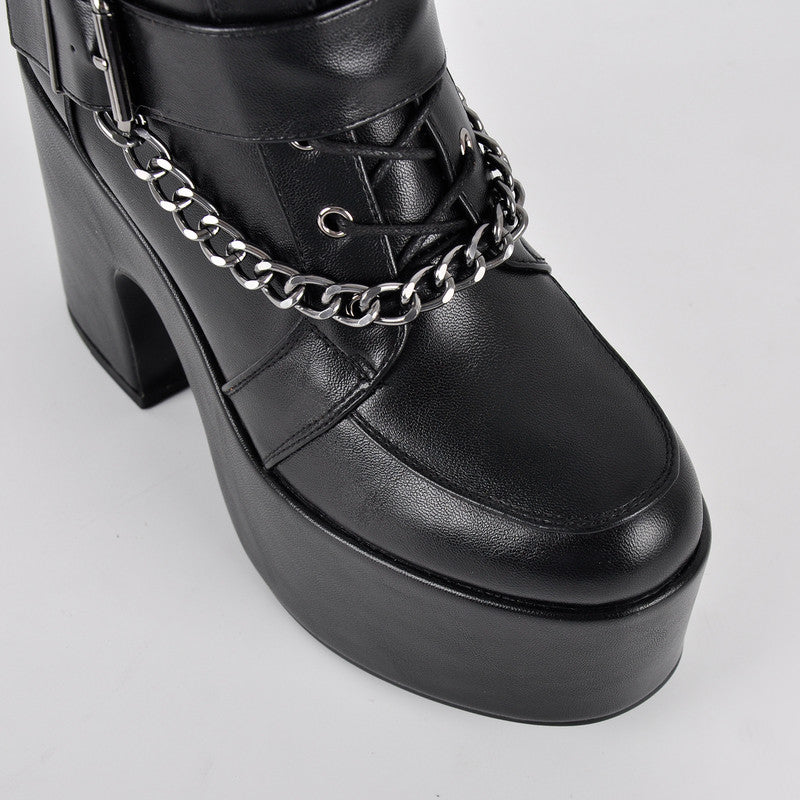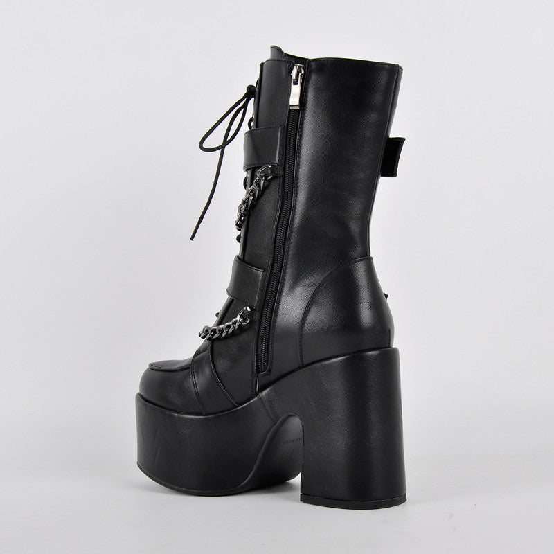 Round Toe Platform Buckle Strap Boots