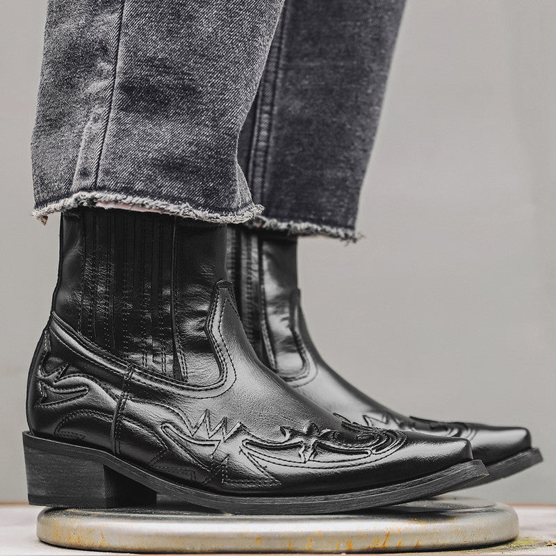 Pointed Toe Embroidery Dress Boots