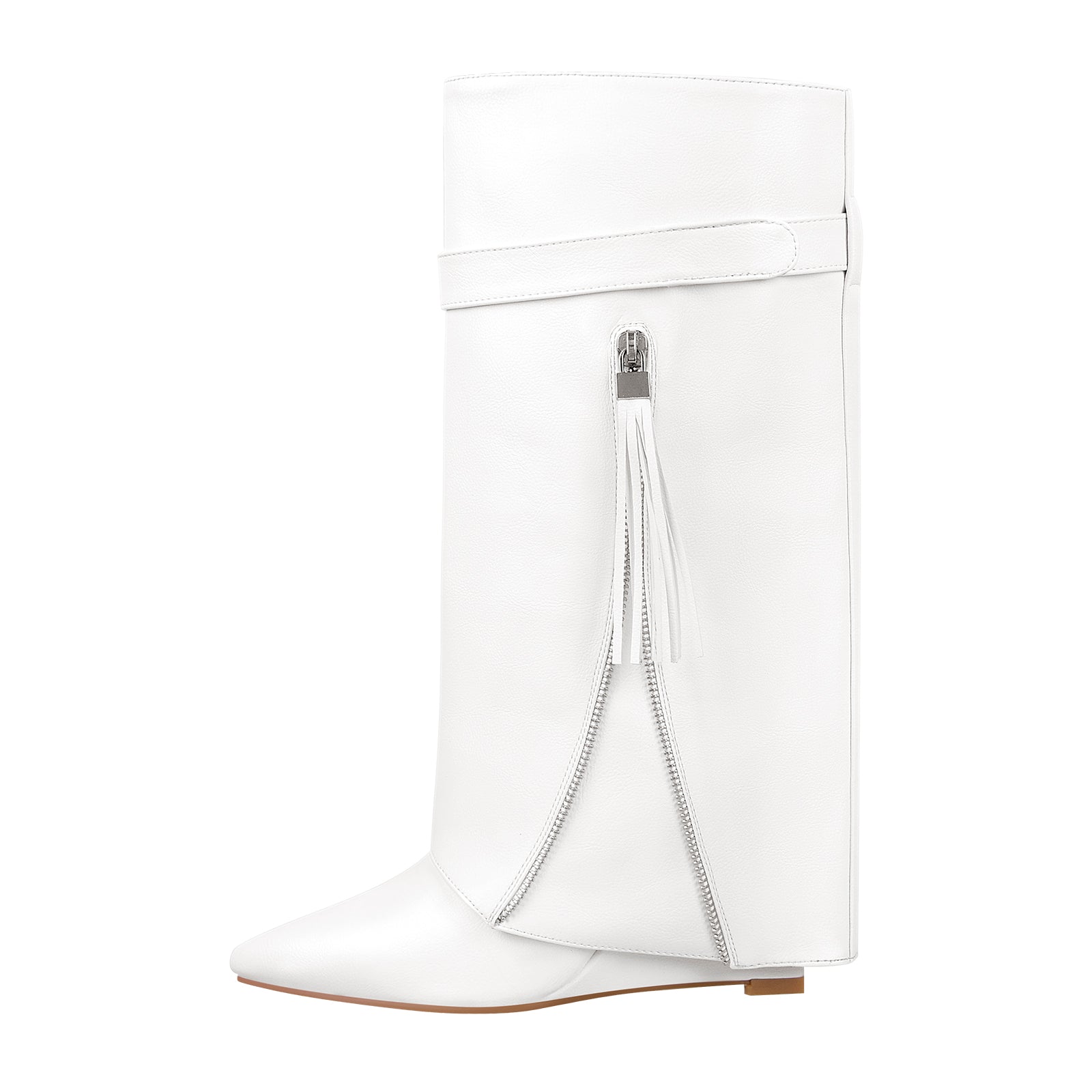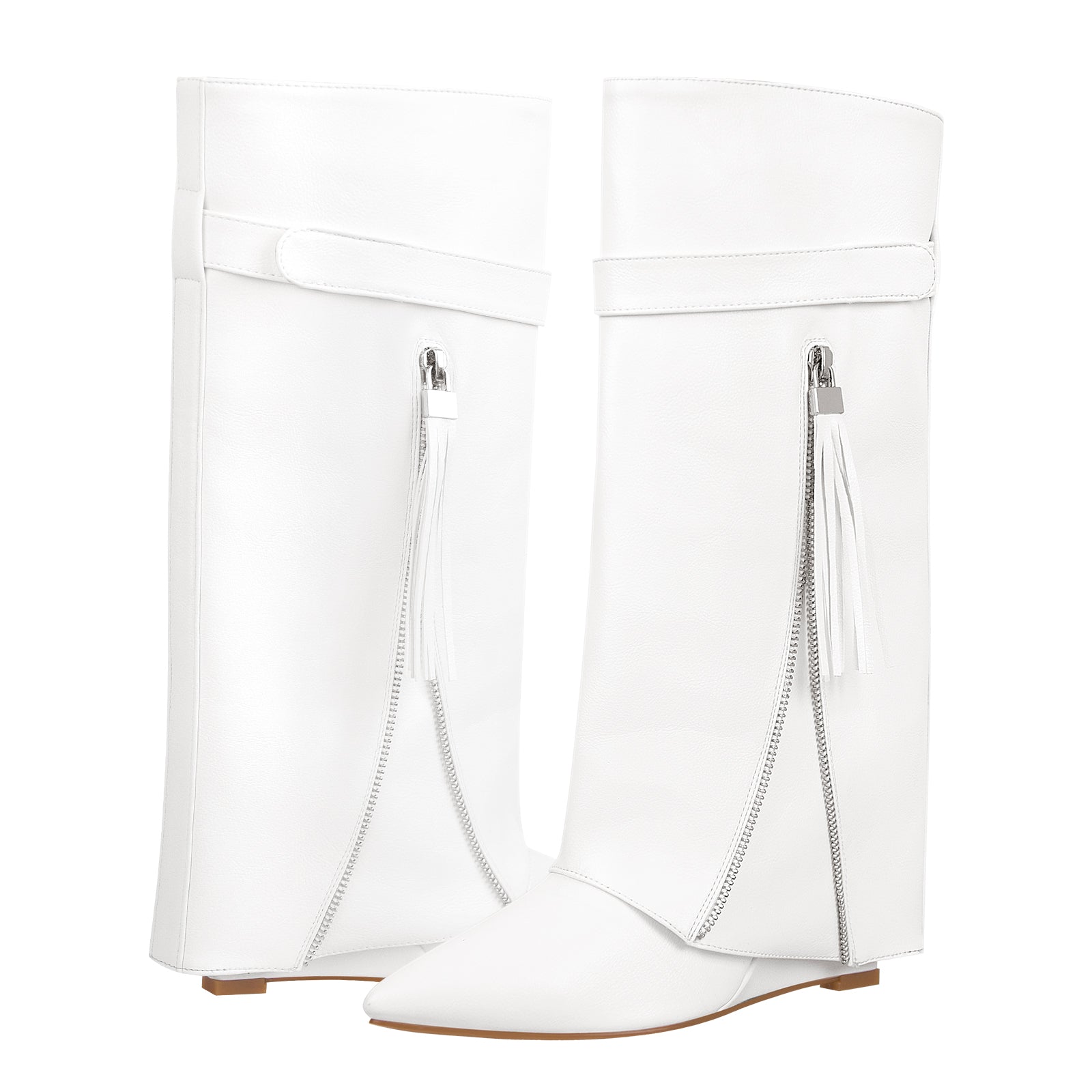 Pointed Toe Side Tassel Zipper Fold High Heel Boots