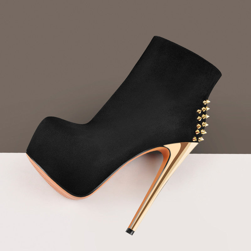 Suede Platform Rivet Stiletto High Heel Ankle Boots